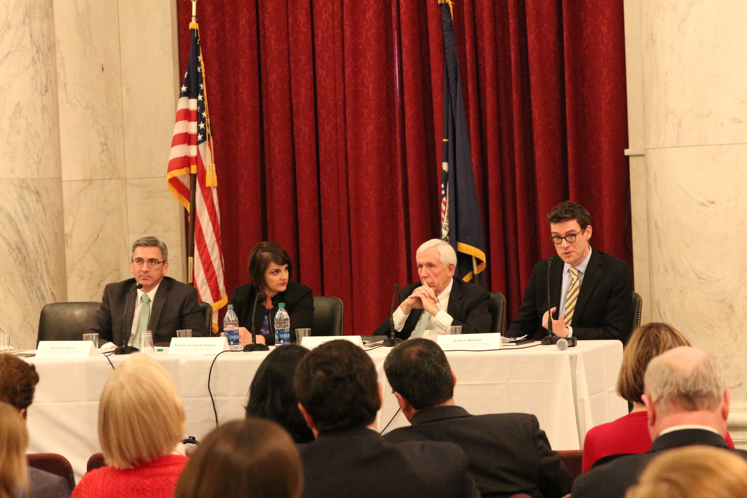 In addition to the reflections given by members of Congress, a panel of seasoned religious freedom experts discussed the implications for the recommendations made by the policy brief. Former Congressman Frank Wolf, Former Canadian Ambassador for International Religious Freedom Andrew Bennet, and USCIRF Commissioner Kristina Arriaga joined the co-authors of the brief, RFI President Thomas Farr and Dennis Hoover, Vice President for Research and Publications at the Institute for Global Engagement.